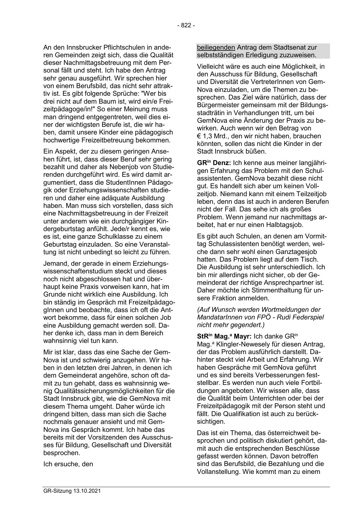 GRin Denz: Ich kenne aus meiner langjährigen Erfahrung das Problem mit den Schulassistenten. GemNova bezahlt diese nicht