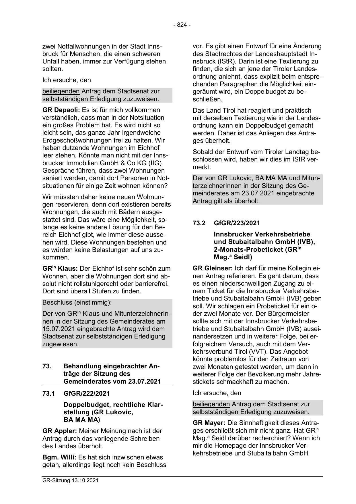 des Stadtrechtes der Landeshauptstadt Innsbruck (IStR). Darin ist eine Textierung zu