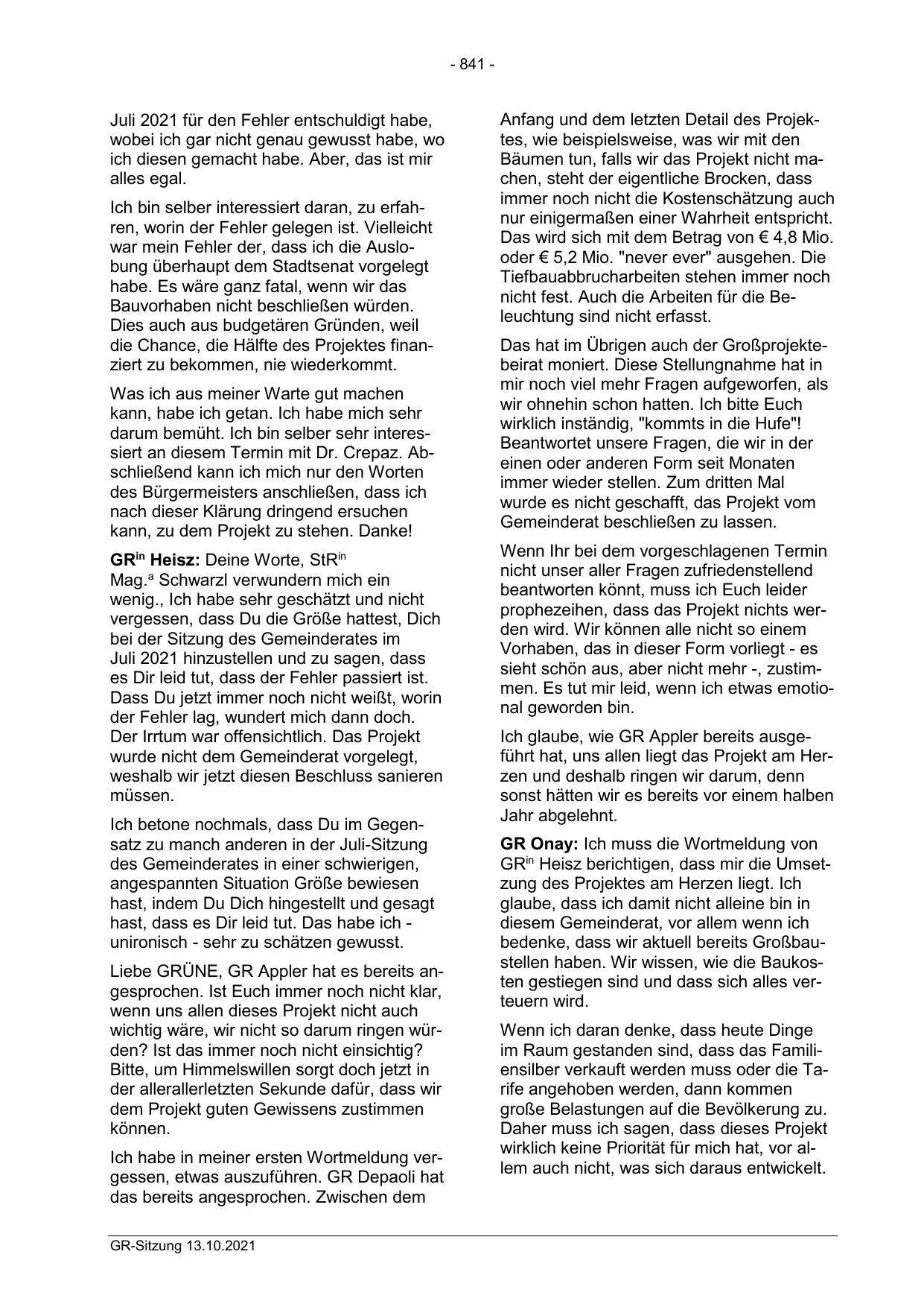 Ich habe in meiner ersten Wortmeldung vergessen, etwas auszuführen. GR Depaoli hat