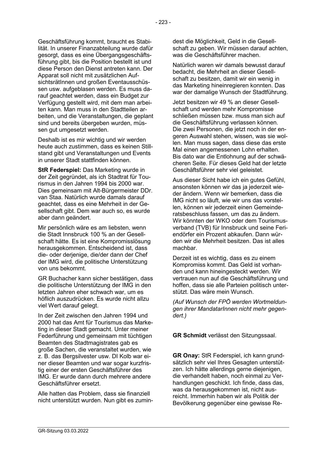 IMG nicht so läuft, wie wir uns das vorstellen, können wir jederzeit einen Gemeinderatsbeschluss fassen, um das zu ändern.