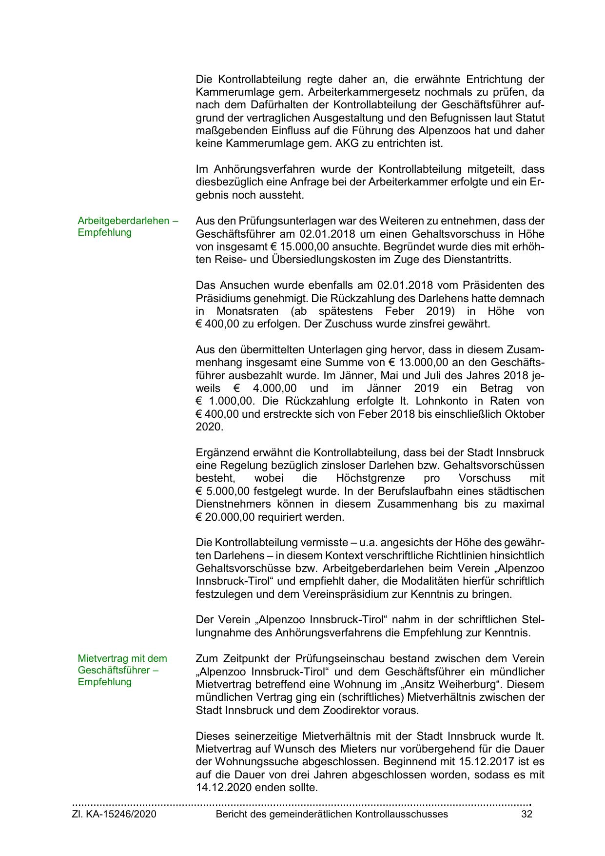 Ergänzend erwähnt die Kontrollabteilung, dass bei der Stadt Innsbruck