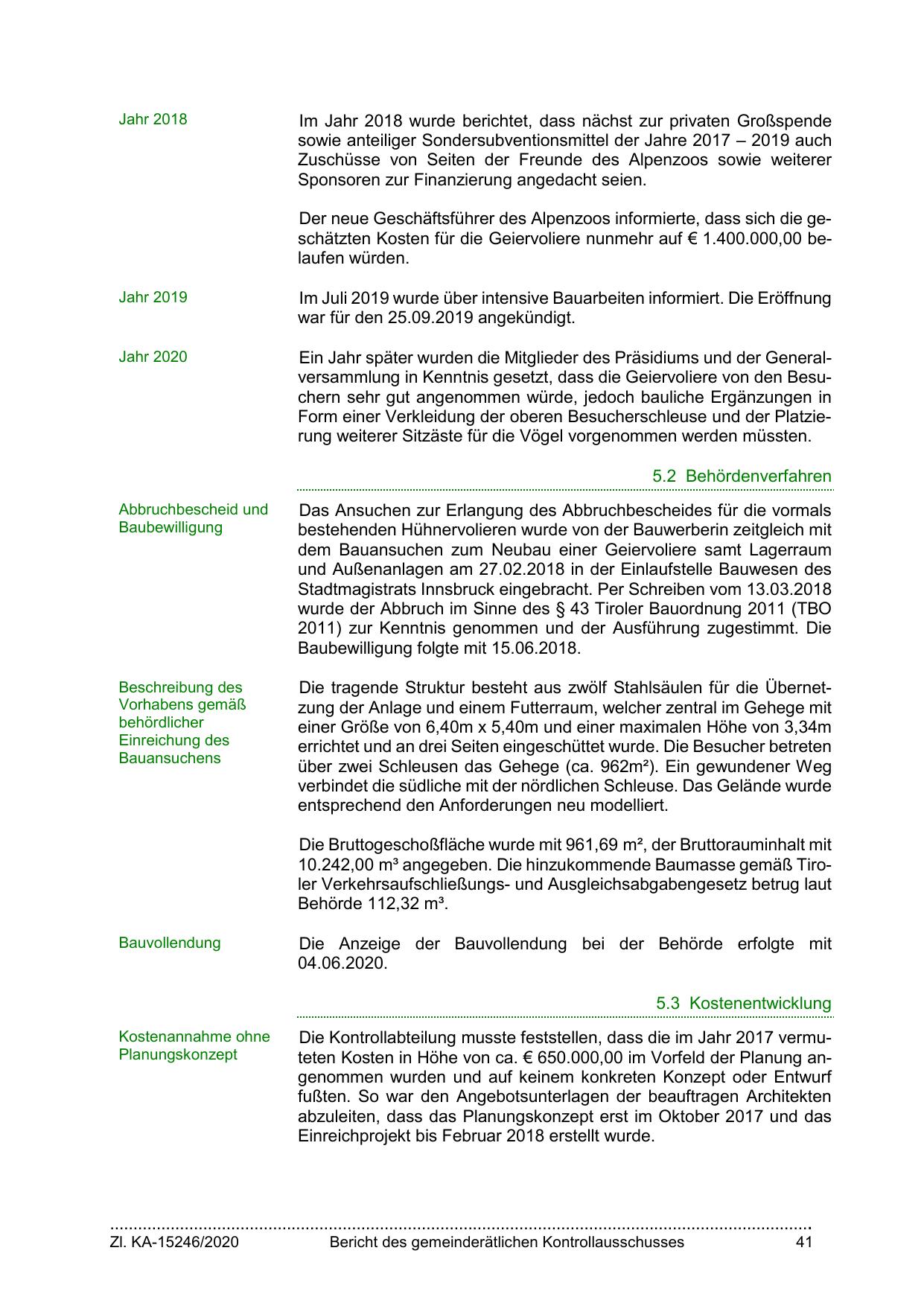 Der neue Geschäftsführer des Alpenzoos informierte, dass sich die geschätzten Kosten für die Geiervoliere nunmehr auf € 1.400.000,00 belaufen würden.