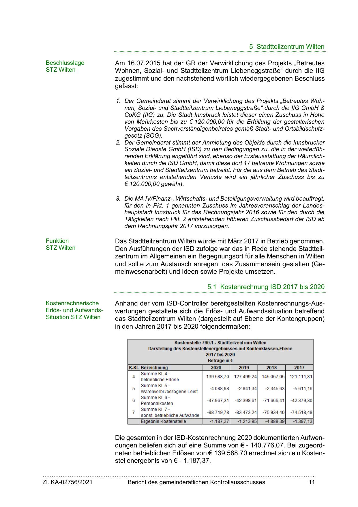 CoKG (IIG) zu. Die Stadt Innsbruck leistet dieser einen Zuschuss in Höhe
