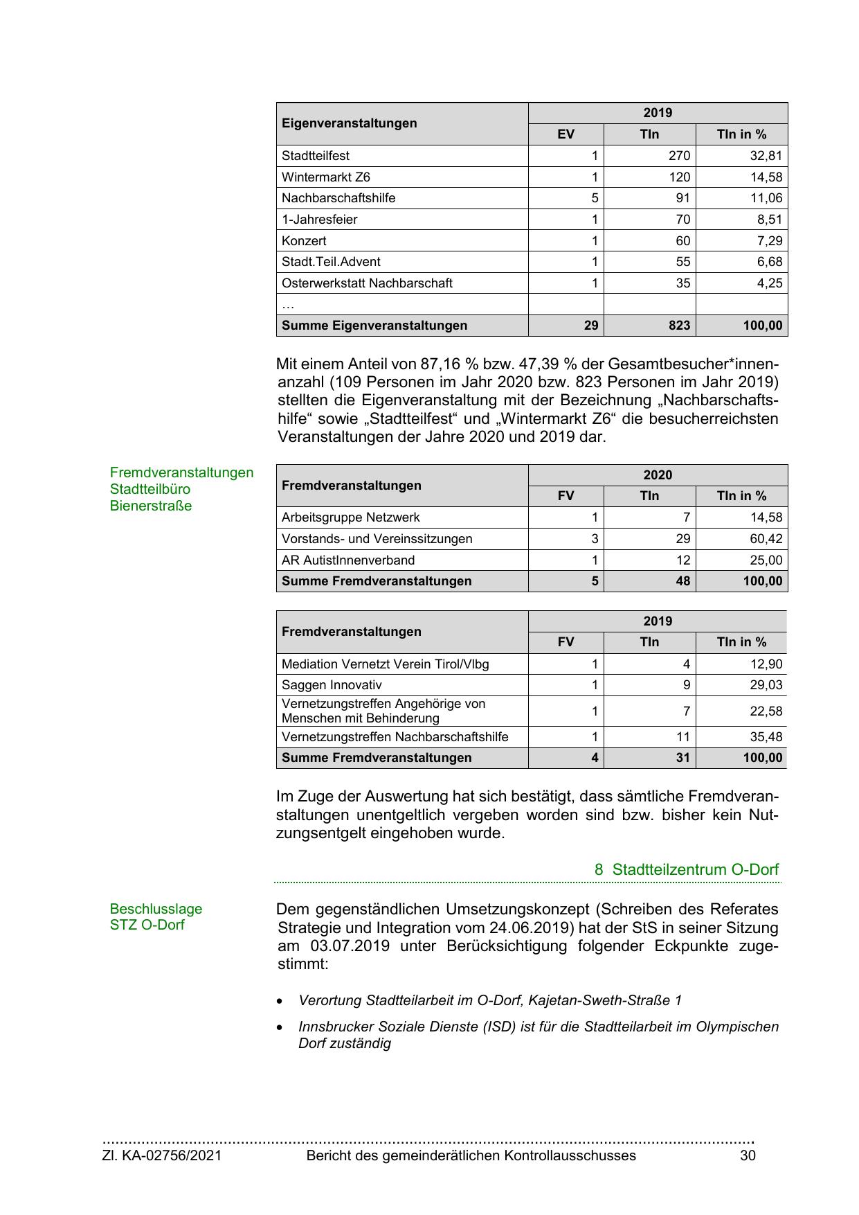 Im Zuge der Auswertung hat sich bestätigt, dass sämtliche Fremdveranstaltungen unentgeltlich vergeben worden sind bzw. bisher kein Nutzungsentgelt eingehoben wurde.