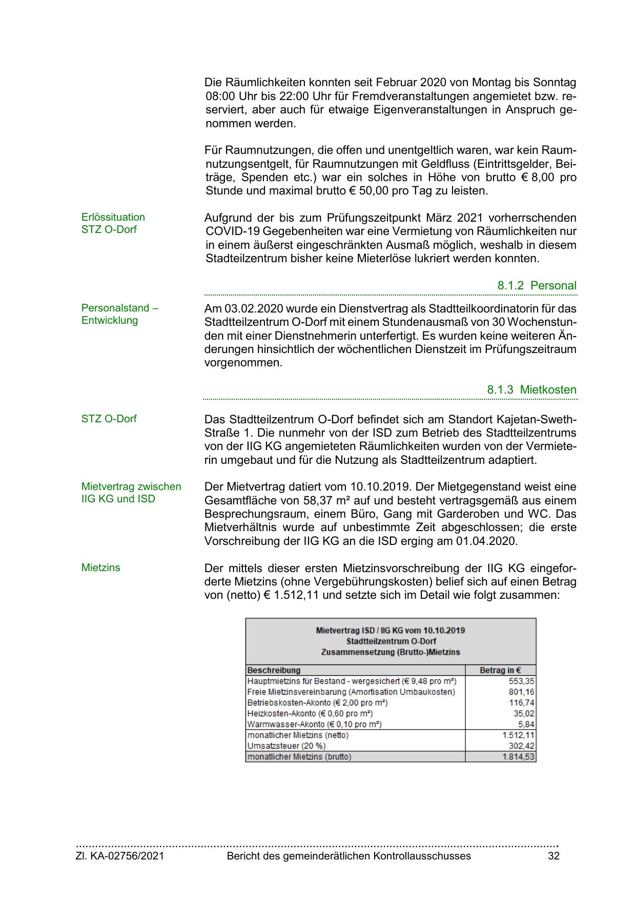 Stadteilzentrum bisher keine Mieterlöse lukriert werden konnten.