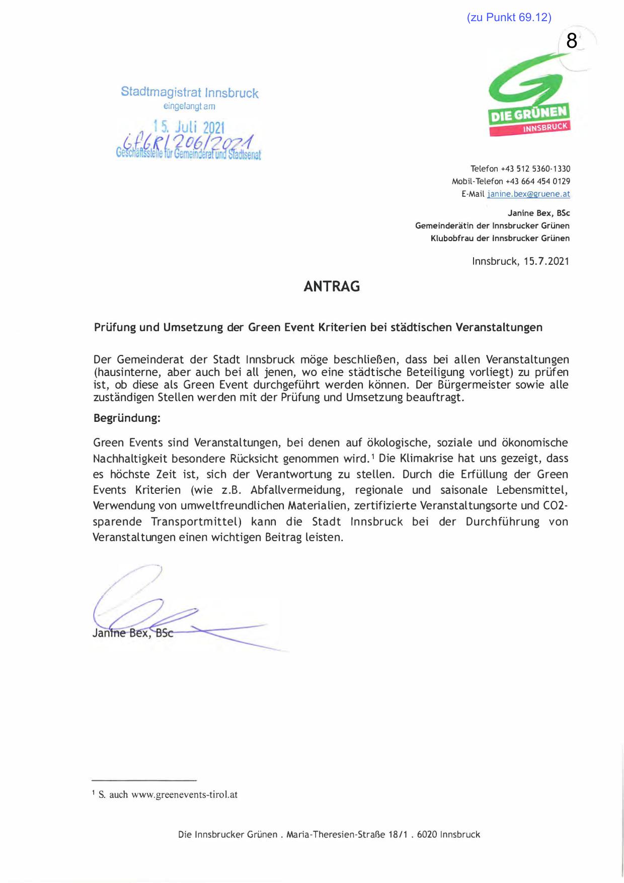 Der Gemeinderat der Stadt I nnsbruck möge beschli eßen, dass bei allen Veranstaltungen