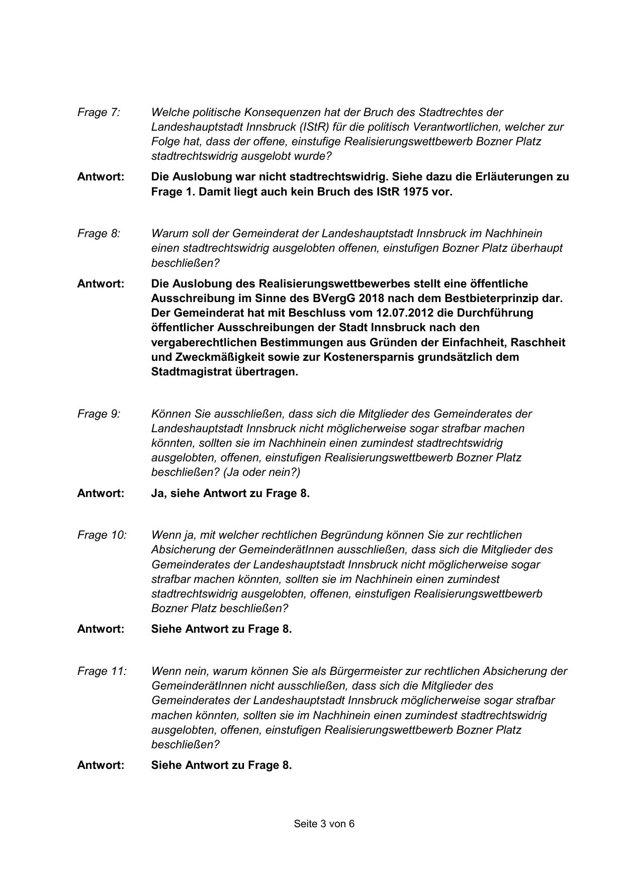Gemeinderates der Landeshauptstadt Innsbruck möglicherweise sogar strafbar