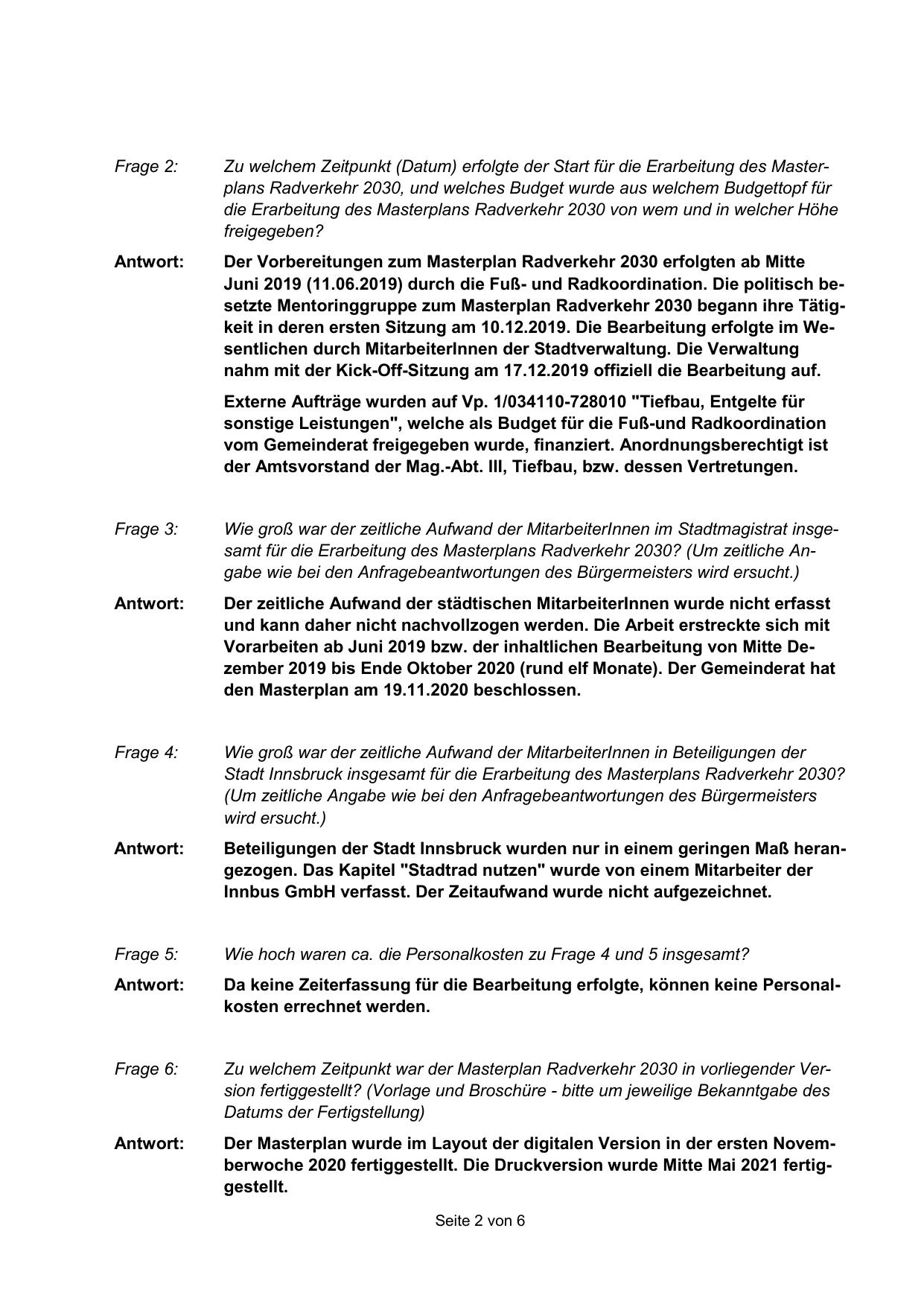 (Um zeitliche Angabe wie bei den Anfragebeantwortungen des Bürgermeisters