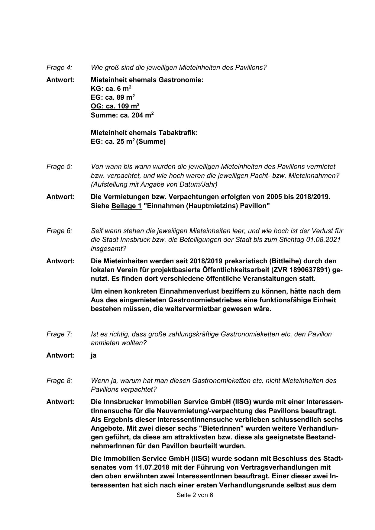 Die Innsbrucker Immobilien Service GmbH (IISG) wurde mit einer InteressentInnensuche für die Neuvermietung/-verpachtung des Pavillons beauftragt.
