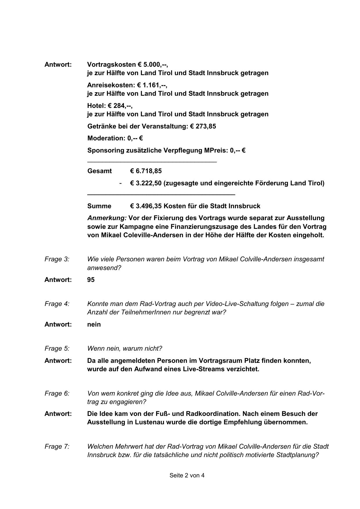 € 3.496,35 Kosten für die Stadt Innsbruck