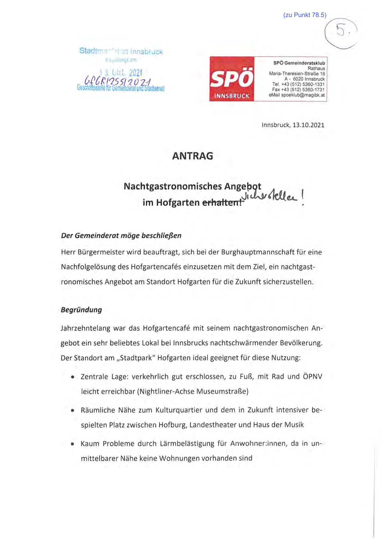 Nachfolgelösung des Hofgartencafes einzusetzen mit dem Ziel, ein nachtgastronomisches Angebot am Standort Hofgarten für die Zukunft sicherzustellen.