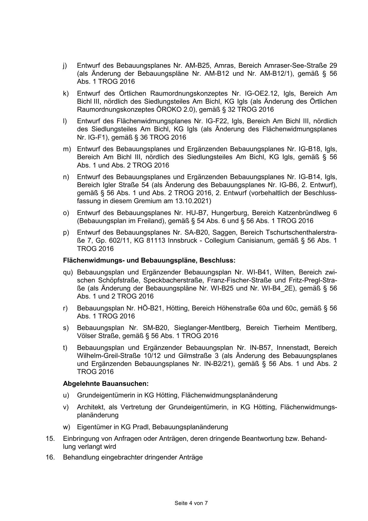 gemäß § 56 Abs. 1 und Abs. 2 TROG 2016, 2. Entwurf (vorbehaltlich der Beschlussfassung in diesem Gremium am 13.10.2021)