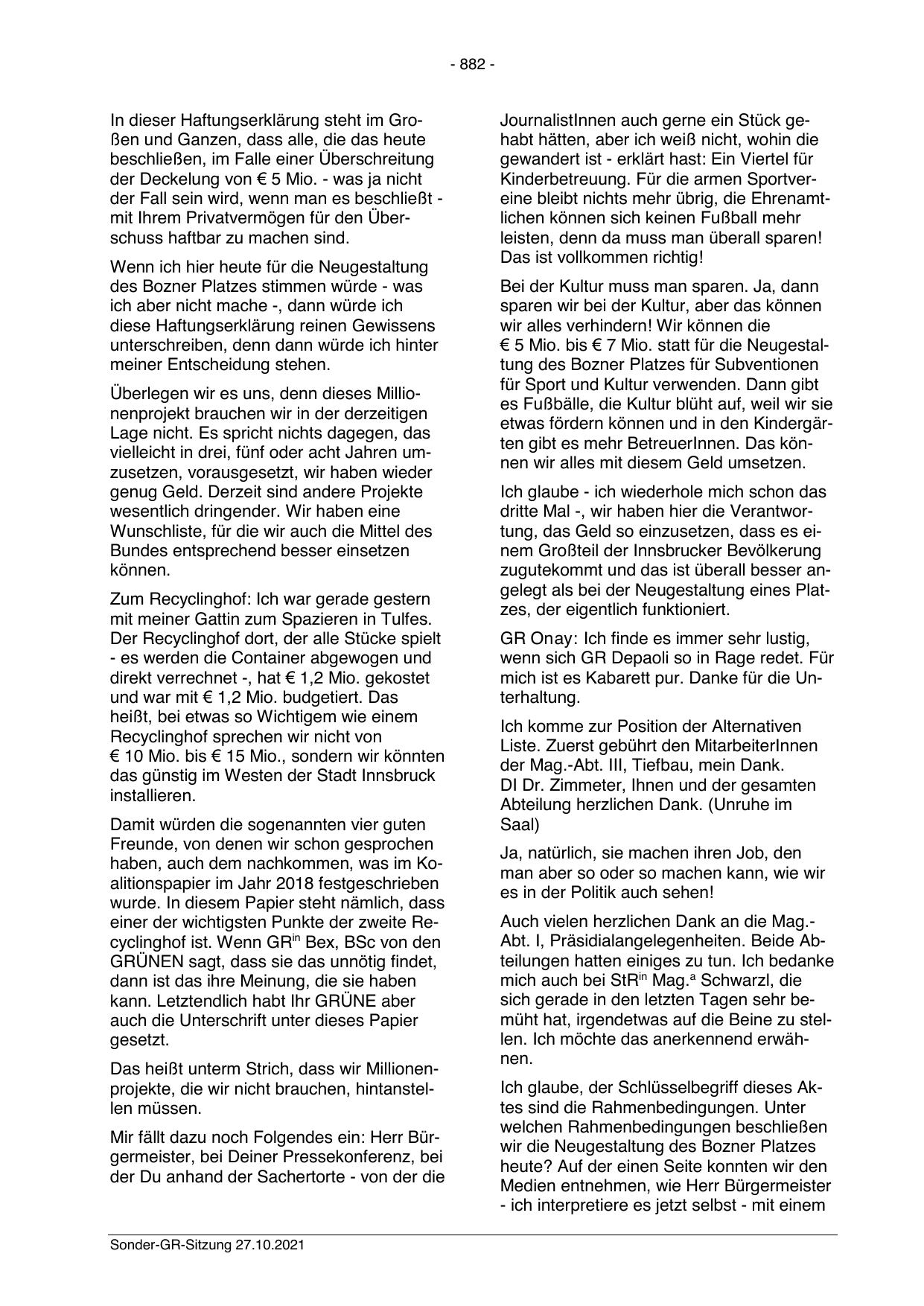 dritte Mal -, wir haben hier die Verantwortung, das Geld so einzusetzen, dass es einem Großteil der Innsbrucker Bevölkerung