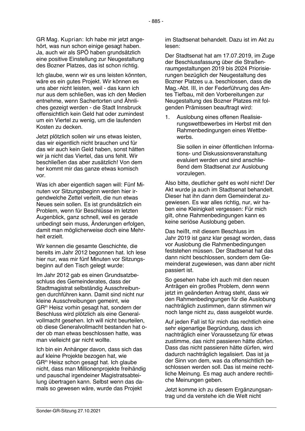 dann nicht beschlossen, sondern dem Gemeinderat zugewiesen, was dann aber nicht