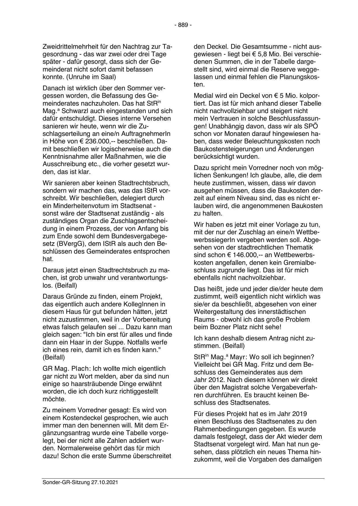 Vielleicht bei GR Mag. Fritz und dem Beschluss des Gemeinderates aus dem