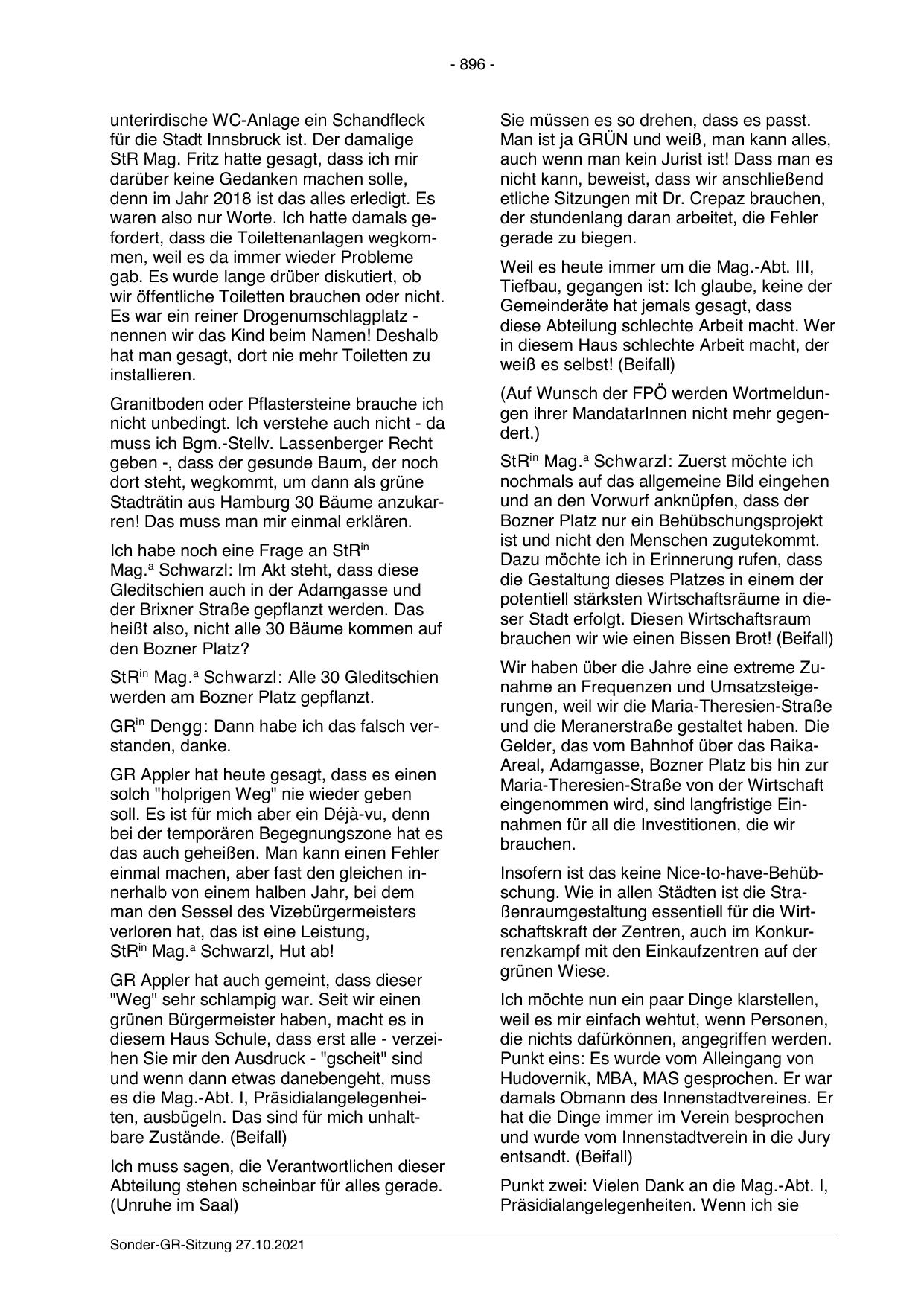 (Auf Wunsch der FPÖ werden Wortmeldungen ihrer MandatarInnen nicht mehr gegendert.)