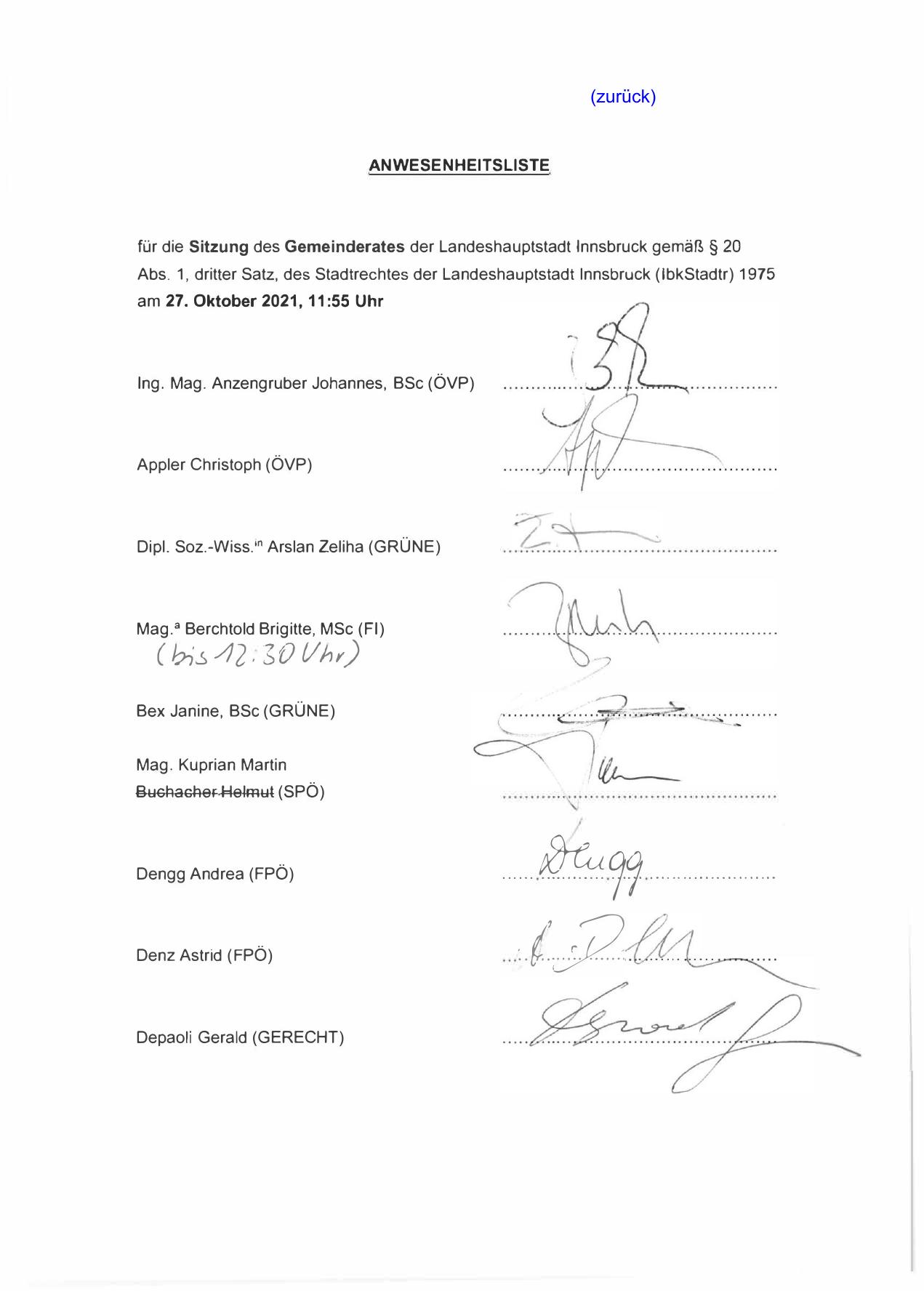 für die Sitzung des Gemeinderates der Landeshauptstadt Innsbruck gemäß § 20