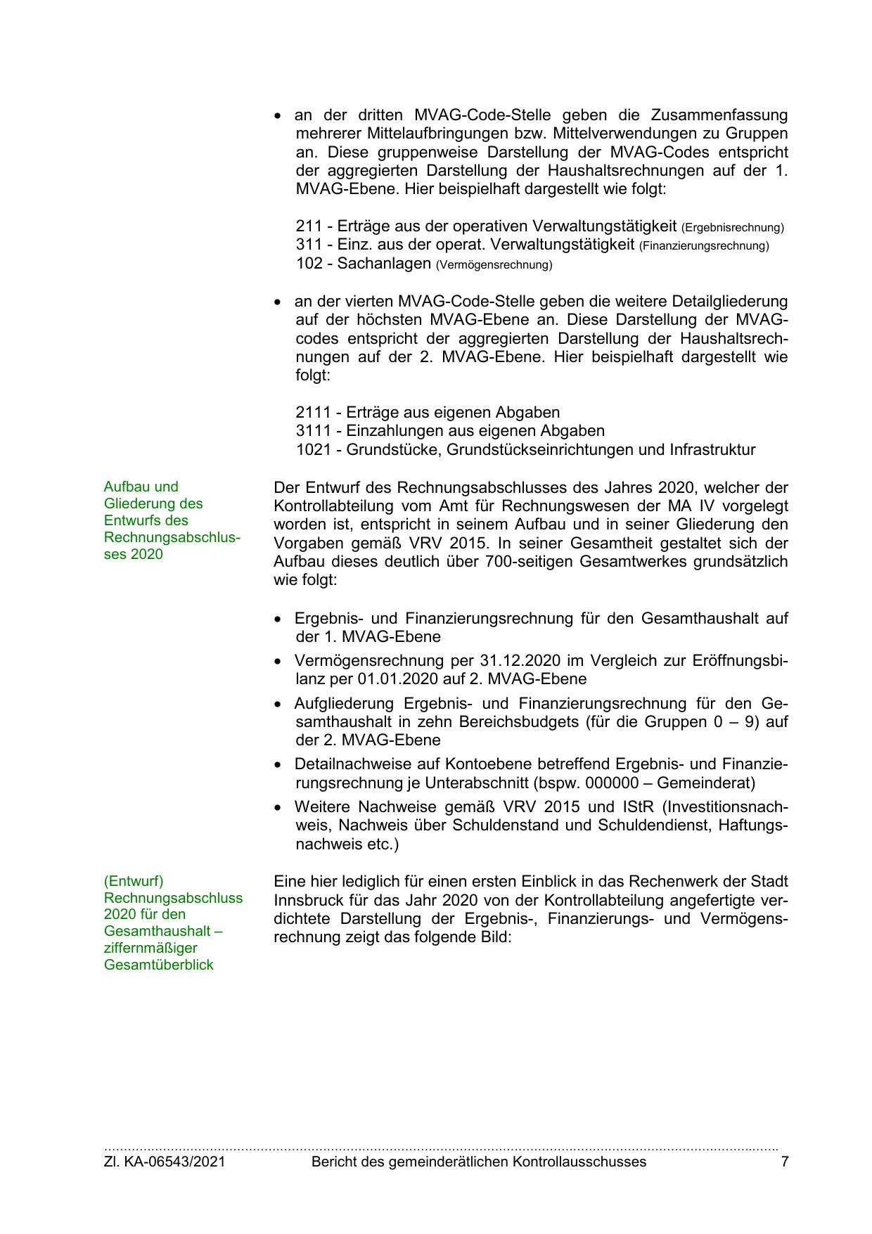 Der Entwurf des Rechnungsabschlusses des Jahres 2020, welcher der