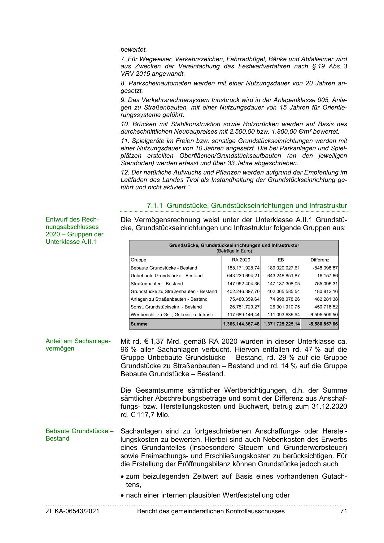 7.1.1 Grundstücke, Grundstückseinrichtungen und Infrastruktur