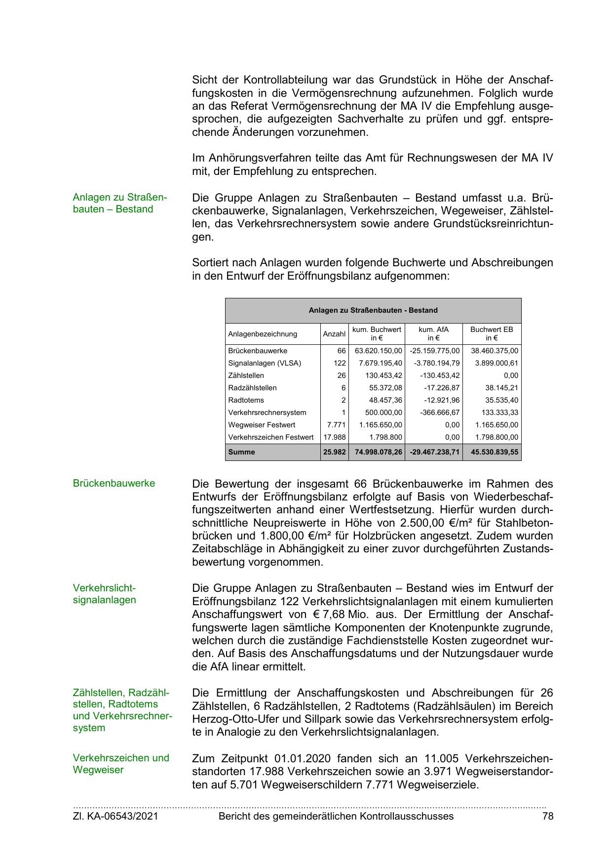 Eröffnungsbilanz 122 Verkehrslichtsignalanlagen mit einem kumulierten