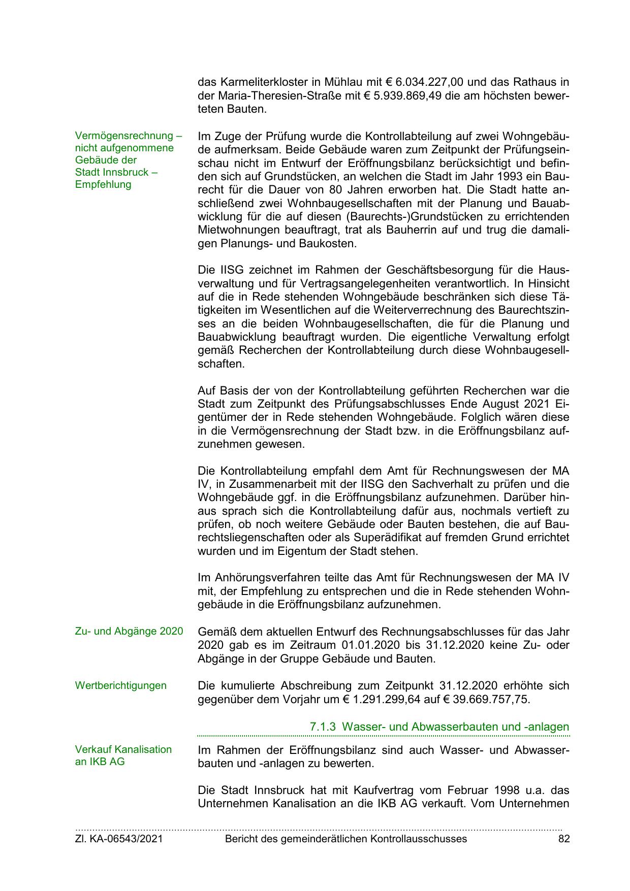 Wohngebäude ggf. in die Eröffnungsbilanz aufzunehmen. Darüber hinaus sprach sich die Kontrollabteilung dafür aus, nochmals vertieft zu