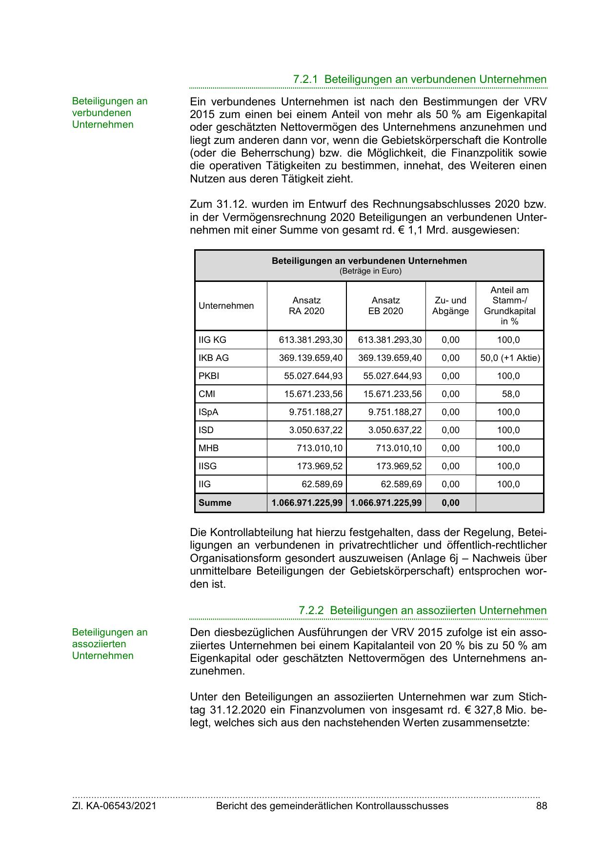 Die Kontrollabteilung hat hierzu festgehalten, dass der Regelung, Beteiligungen an verbundenen in privatrechtlicher und öffentlich-rechtlicher