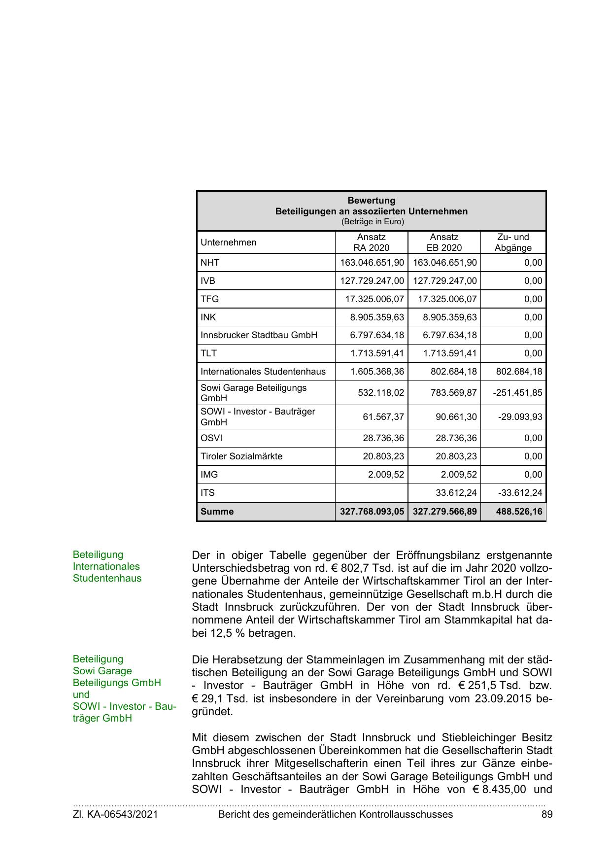 Unterschiedsbetrag von rd. € 802,7 Tsd. ist auf die im Jahr 2020 vollzogene Übernahme der Anteile der Wirtschaftskammer Tirol an der Internationales Studentenhaus, gemeinnützige Gesellschaft m.b.H durch die