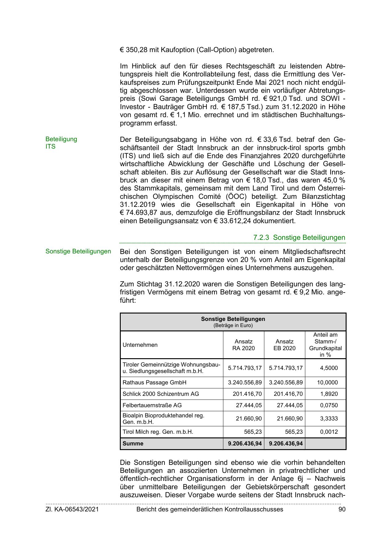 des Stammkapitals, gemeinsam mit dem Land Tirol und dem Österreichischen Olympischen Comité (ÖOC) beteiligt. Zum Bilanzstichtag