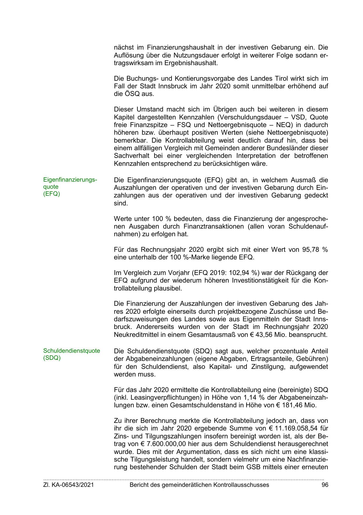 Fall der Stadt Innsbruck im Jahr 2020 somit unmittelbar erhöhend auf