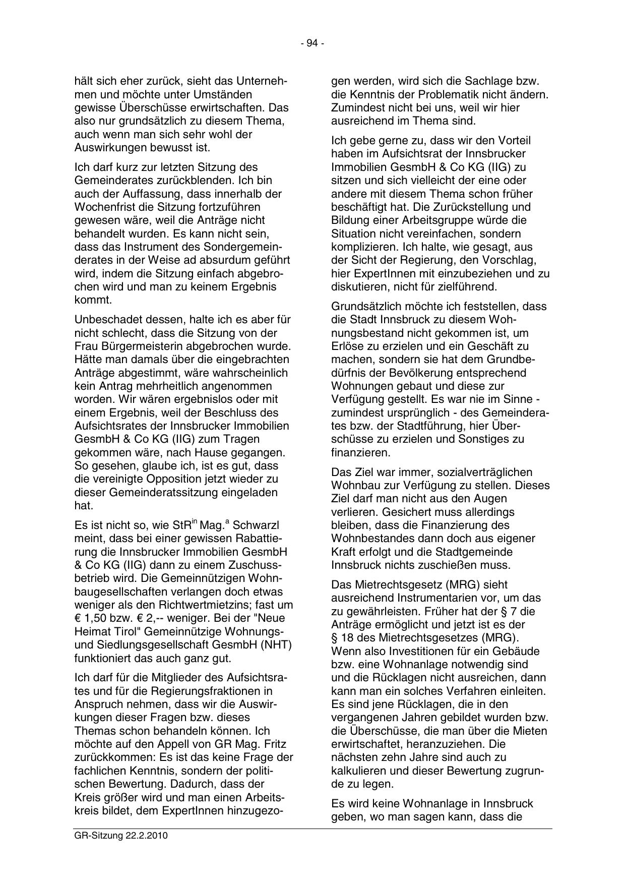 Kreis größer wird und man einen Arbeitskreis bildet, dem ExpertInnen hinzugezoGR-Sitzung 22.2.2010