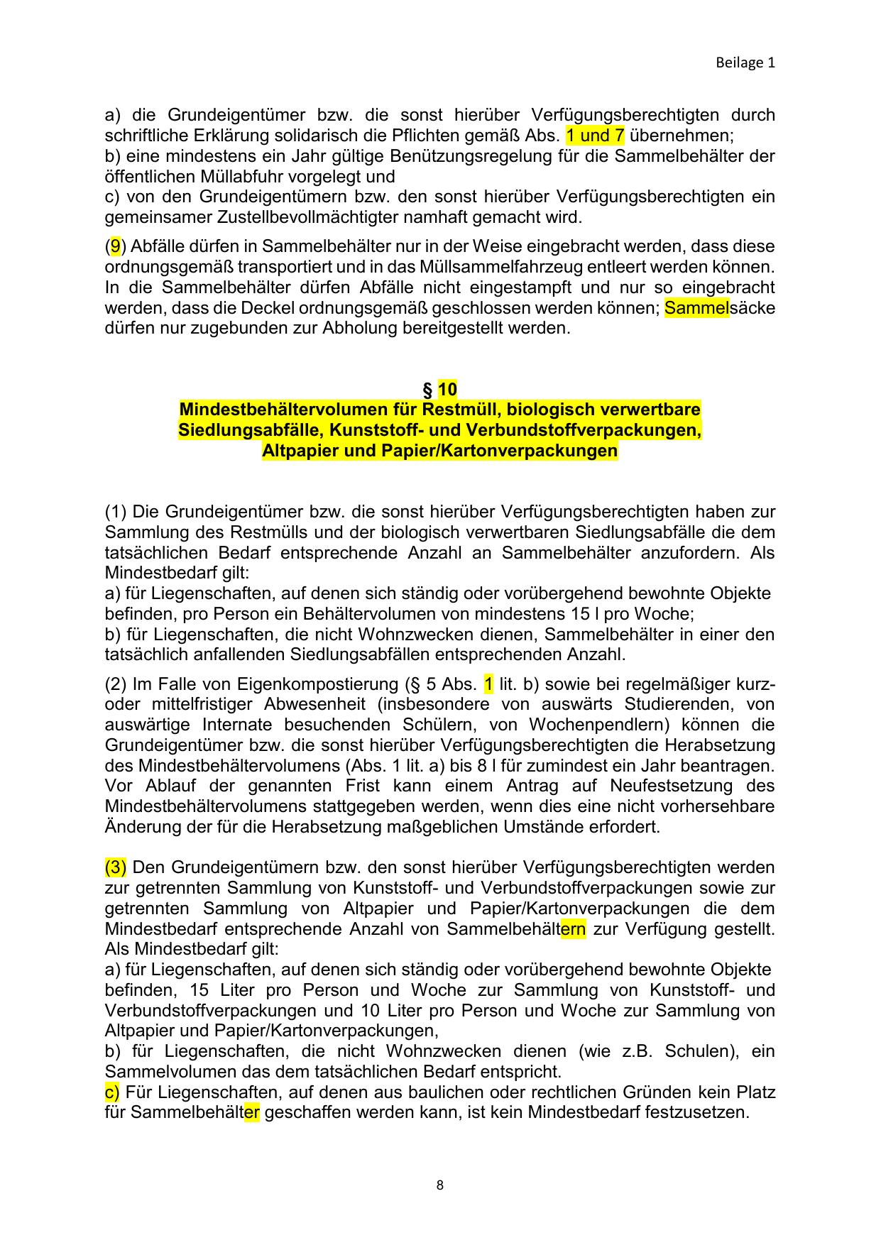 (9) Abfälle dürfen in Sammelbehälter nur in der Weise eingebracht werden, dass diese