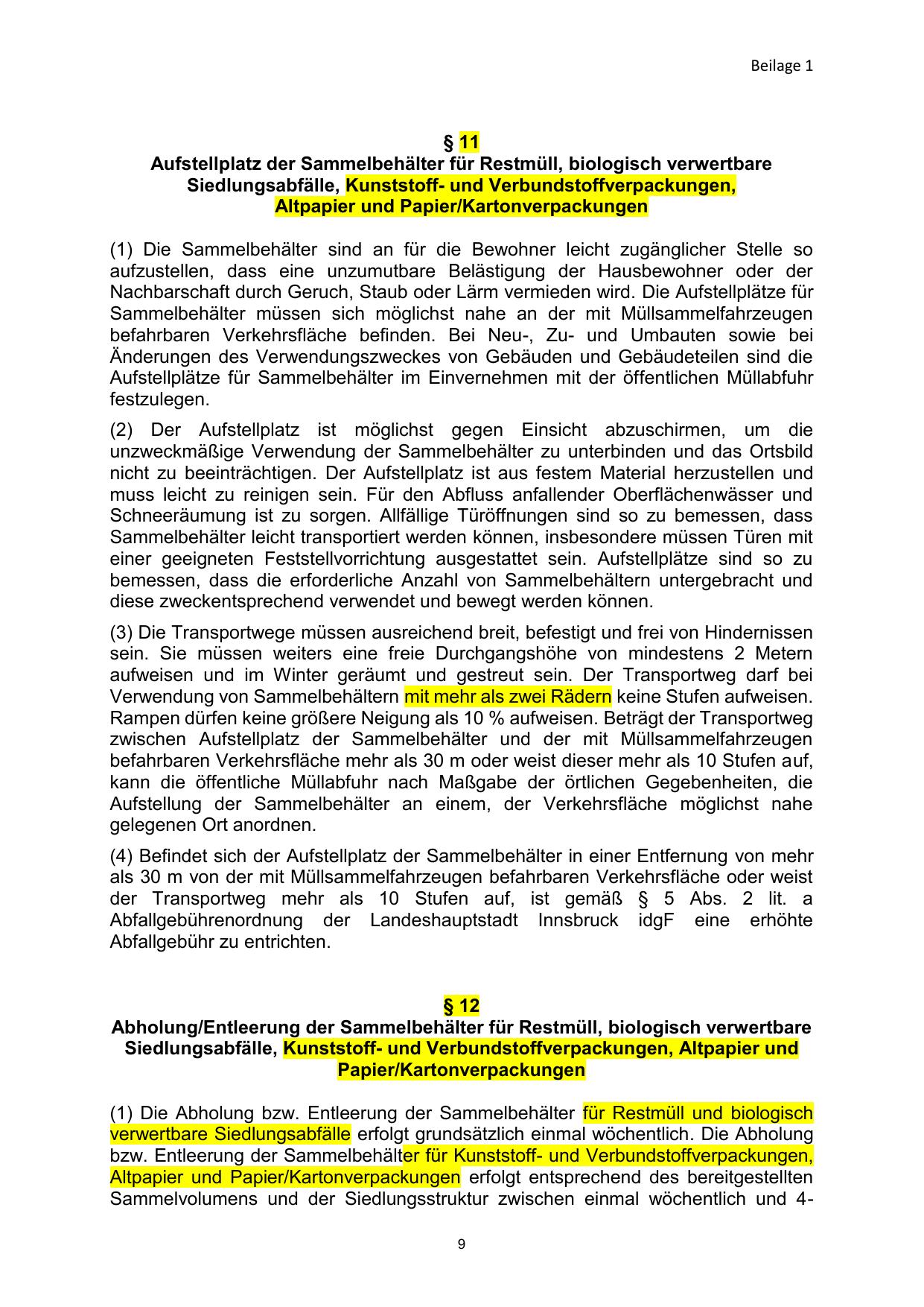 Abfallgebührenordnung der Landeshauptstadt Innsbruck idgF eine erhöhte