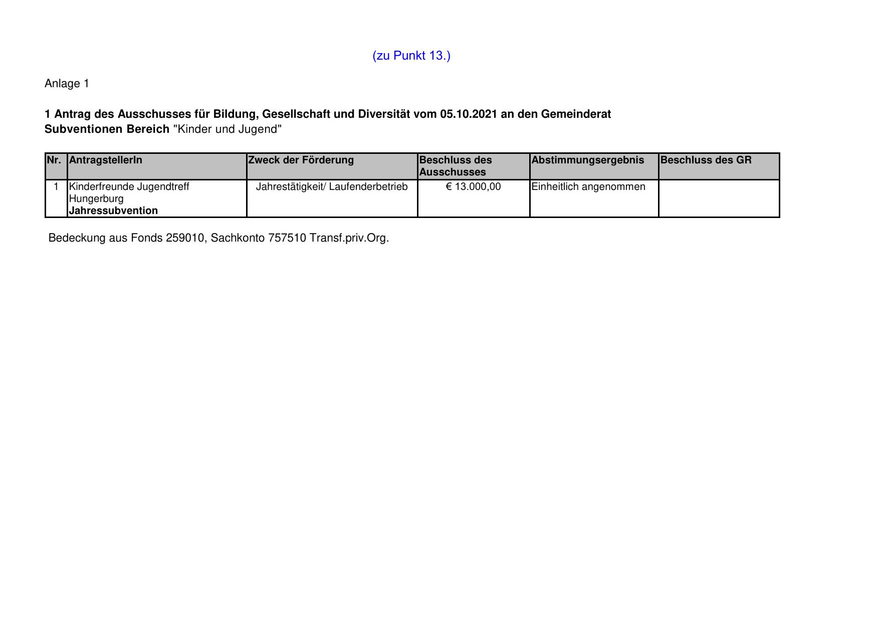 1 Antrag des Ausschusses für Bildung, Gesellschaft und Diversität vom 05.10.2021 an den Gemeinderat