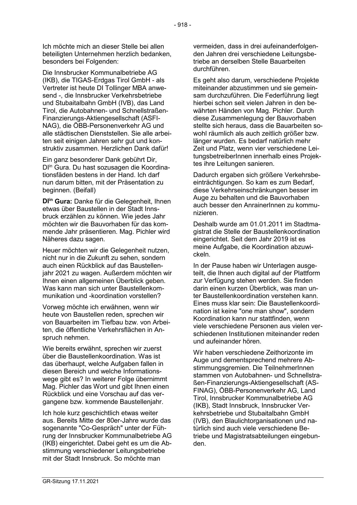Vertreter ist heute DI Tollinger MBA anwesend -, die Innsbrucker Verkehrsbetriebe