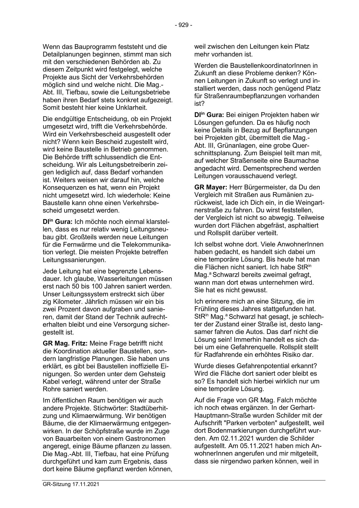 möglich sind und welche nicht. Die Mag.Abt. III, Tiefbau, sowie die Leitungsbetriebe