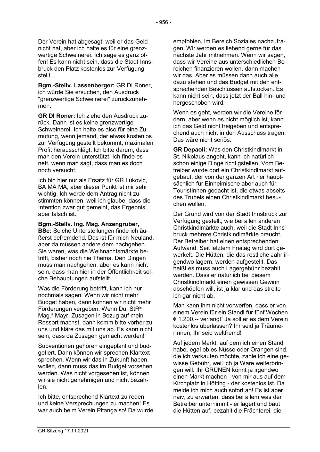 nicht hat, aber ich halte es für eine grenzwertige Schweinerei. Ich sage es ganz offen! Es kann nicht sein, dass die Stadt Innsbruck den Platz kostenlos zur Verfügung