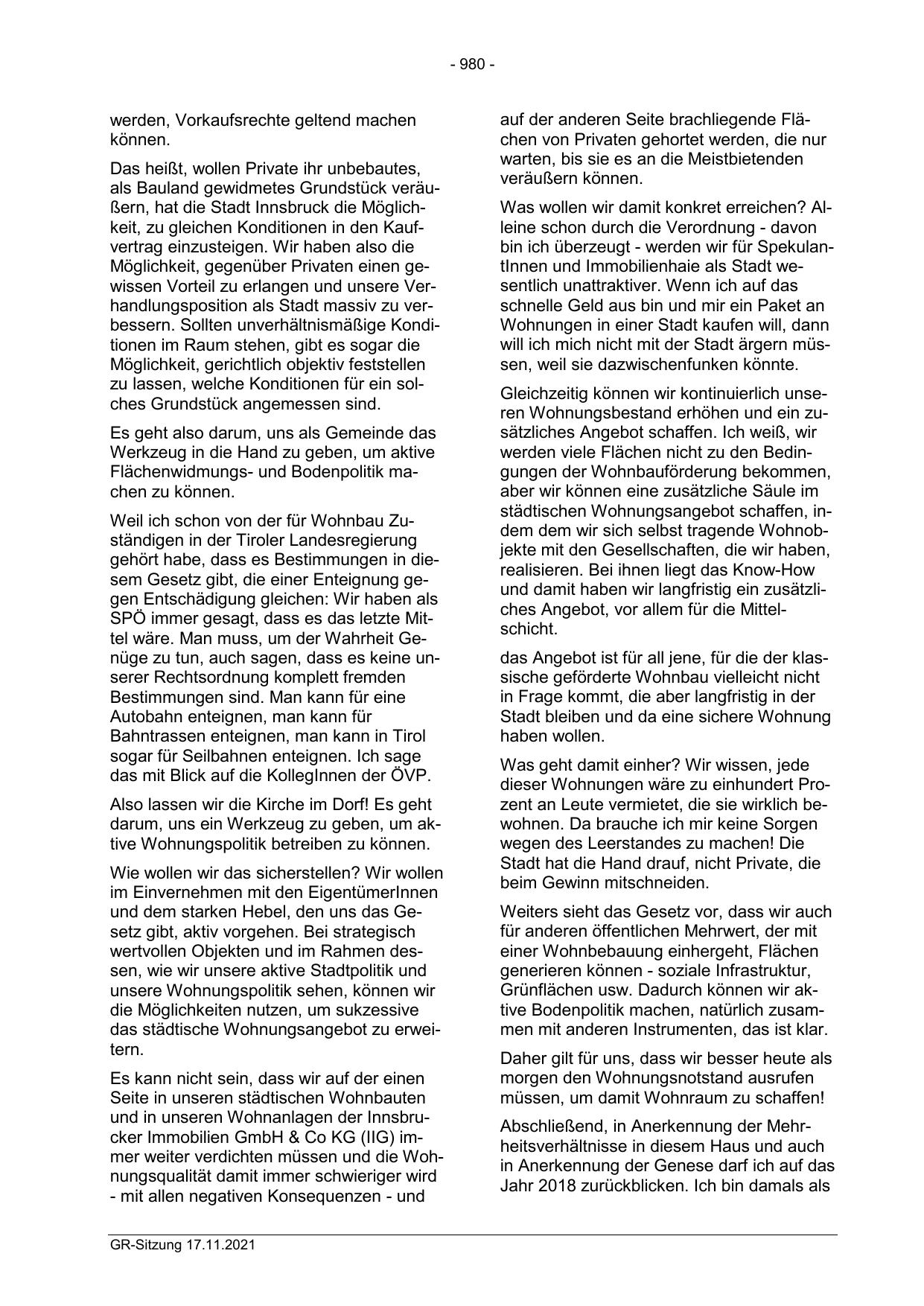 als Bauland gewidmetes Grundstück veräußern, hat die Stadt Innsbruck die Möglichkeit, zu gleichen Konditionen in den Kaufvertrag einzusteigen. Wir haben also die