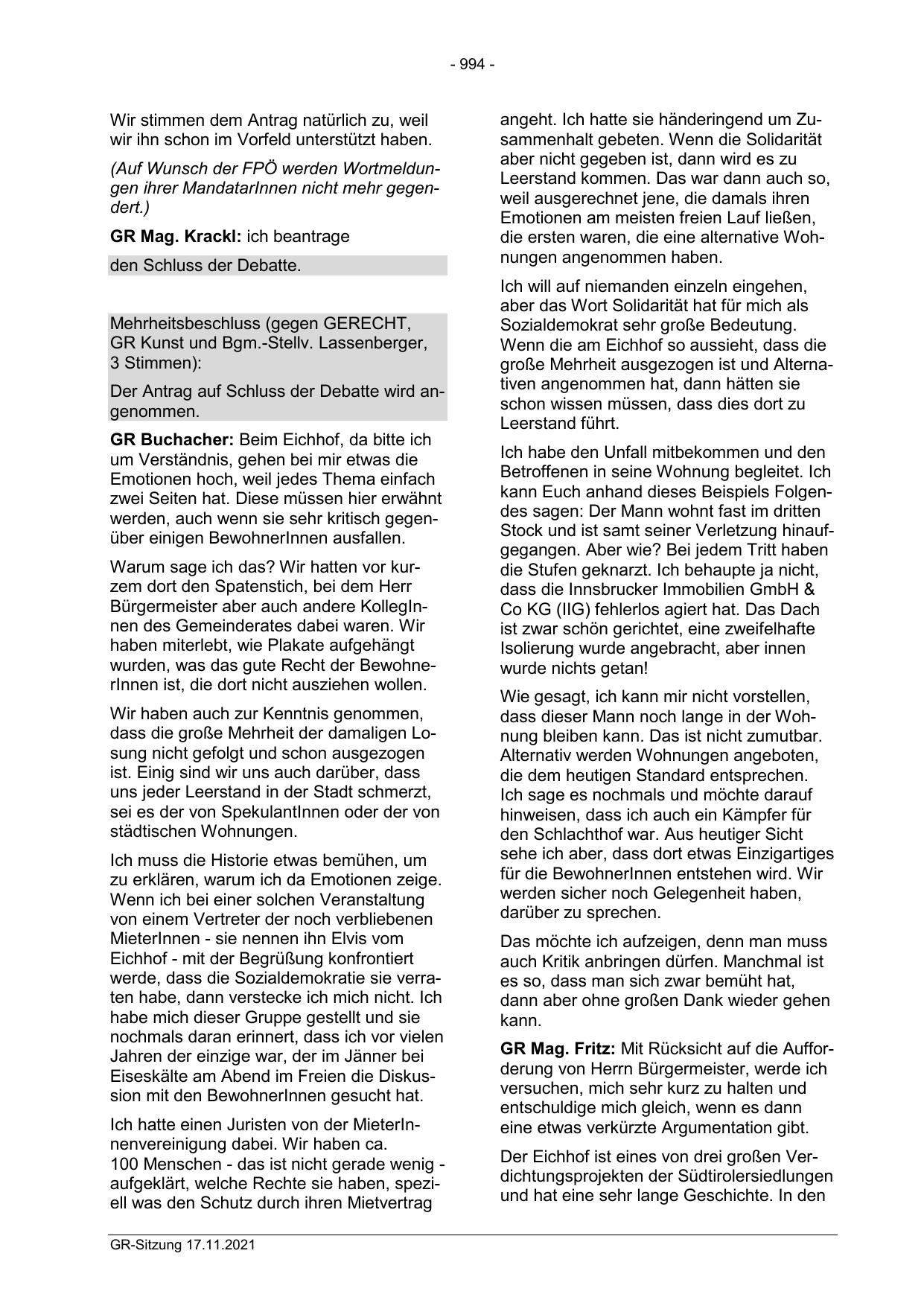 (Auf Wunsch der FPÖ werden Wortmeldungen ihrer MandatarInnen nicht mehr gegendert.)