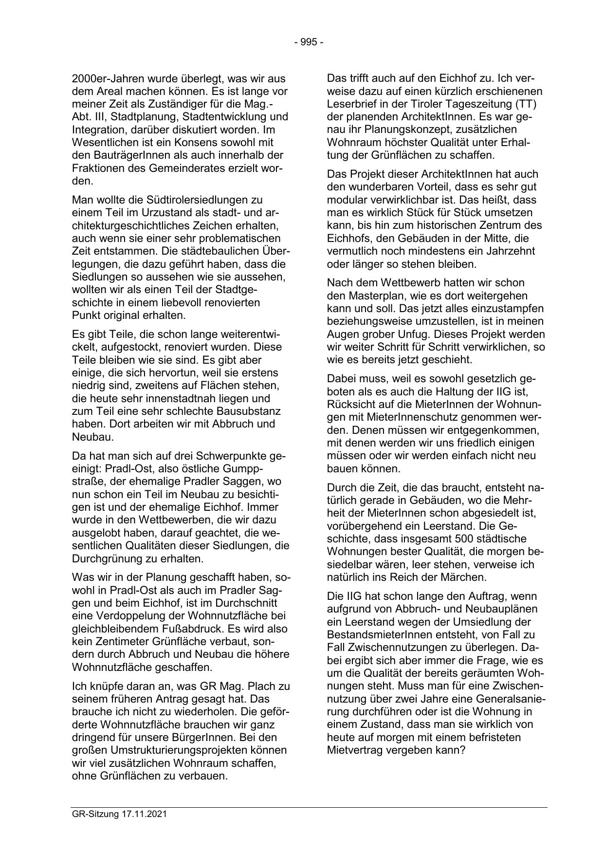 Was wir in der Planung geschafft haben, sowohl in Pradl-Ost als auch im Pradler Saggen und beim Eichhof, ist im Durchschnitt