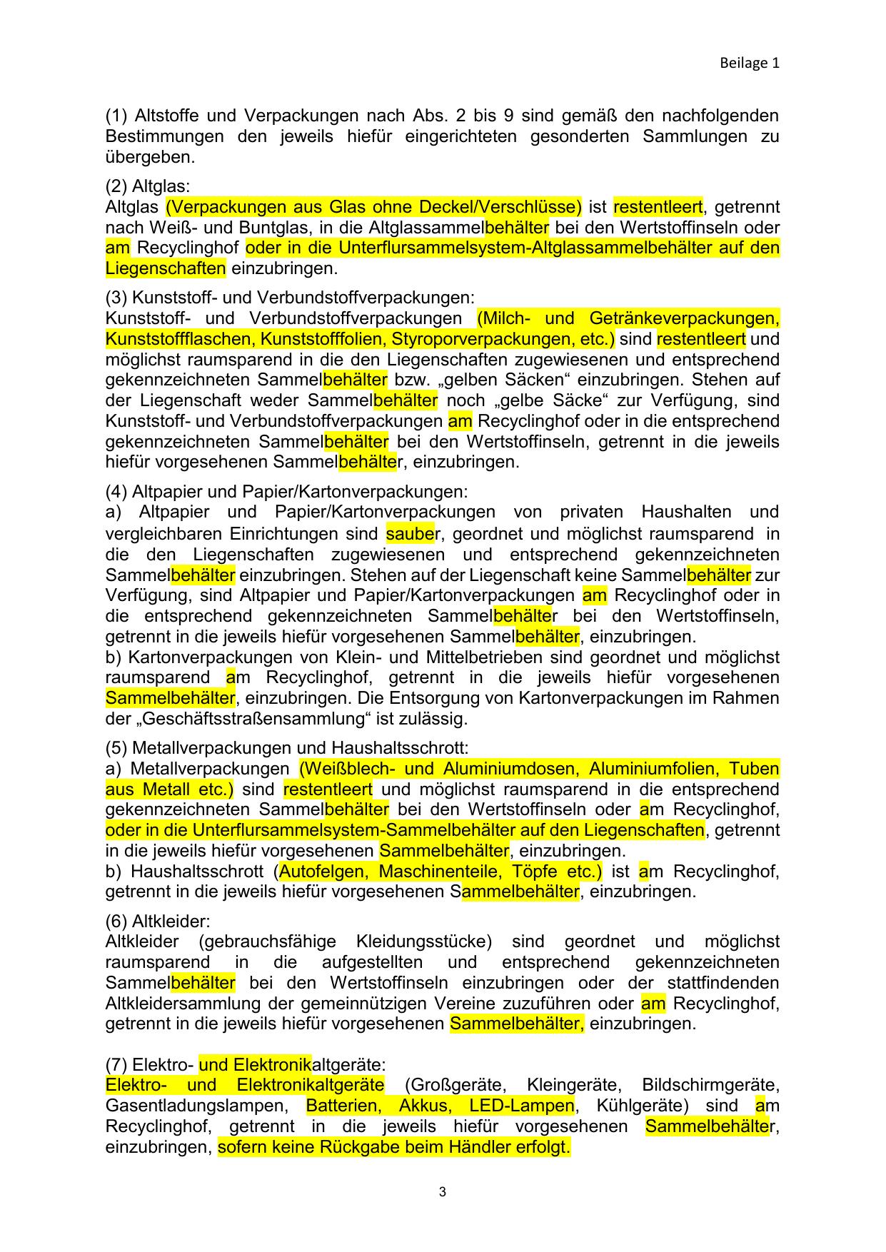(1) Altstoffe und Verpackungen nach Abs. 2 bis 9 sind gemäß den nachfolgenden