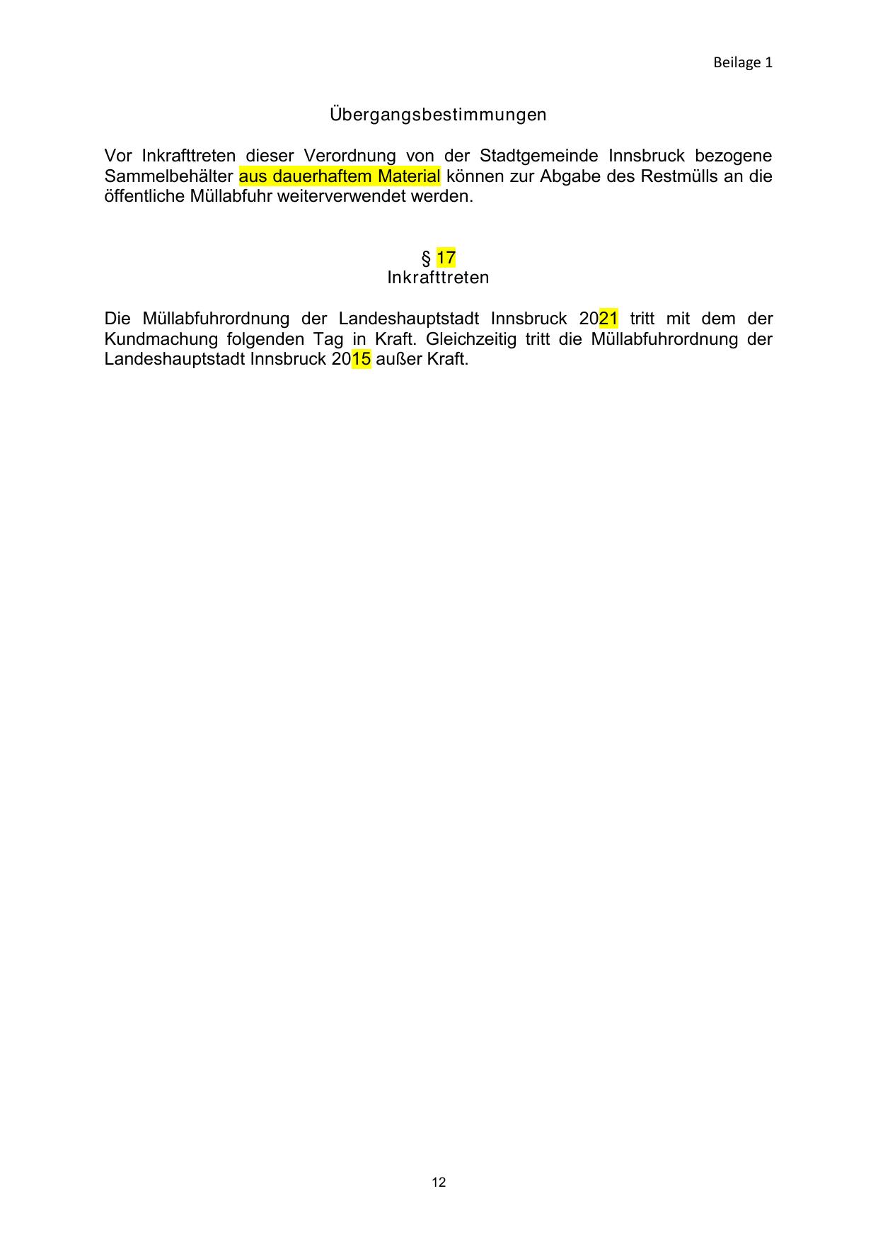 Die Müllabfuhrordnung der Landeshauptstadt Innsbruck 2021 tritt mit dem der