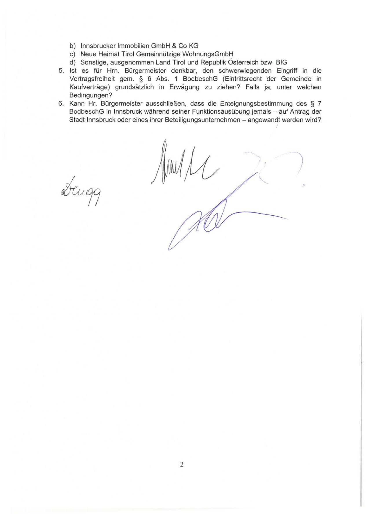 BodbeschG in Innsbruck während seiner Funktionsausübung jemals - auf Antrag der