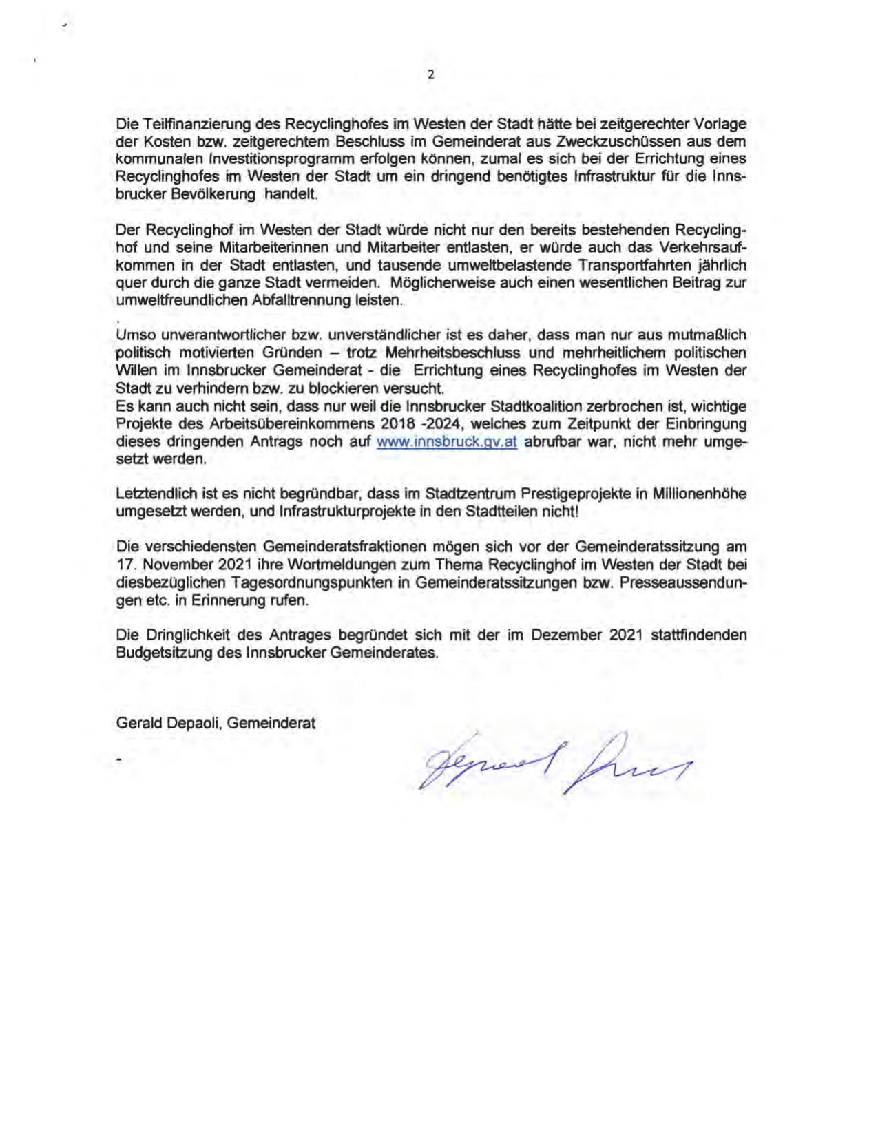 Recyclinghofes im Westen der Stadt um ein dringend benötigtes Infrastruktur für die lnnsbrucker Bevölkerung handelt.