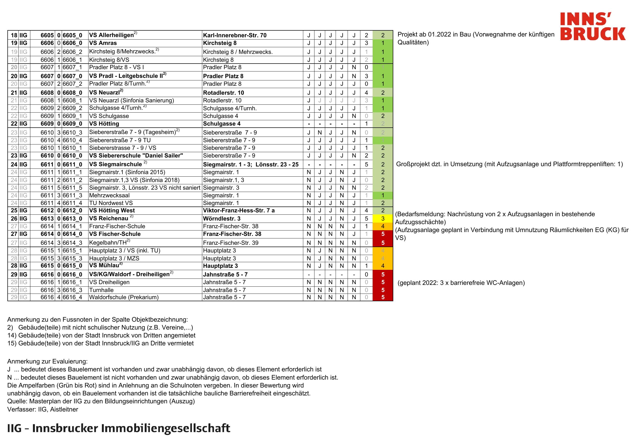 Quelle: Masterplan der IIG zu den Bildungseinrichtungen (Auszug)