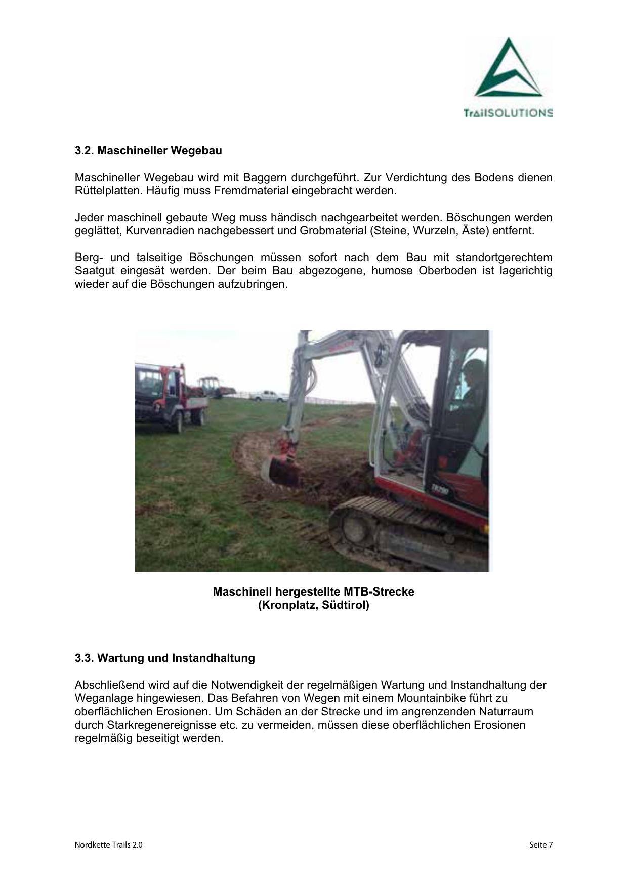 Maschineller Wegebau wird mit Baggern durchgeführt. Zur Verdichtung des Bodens dienen