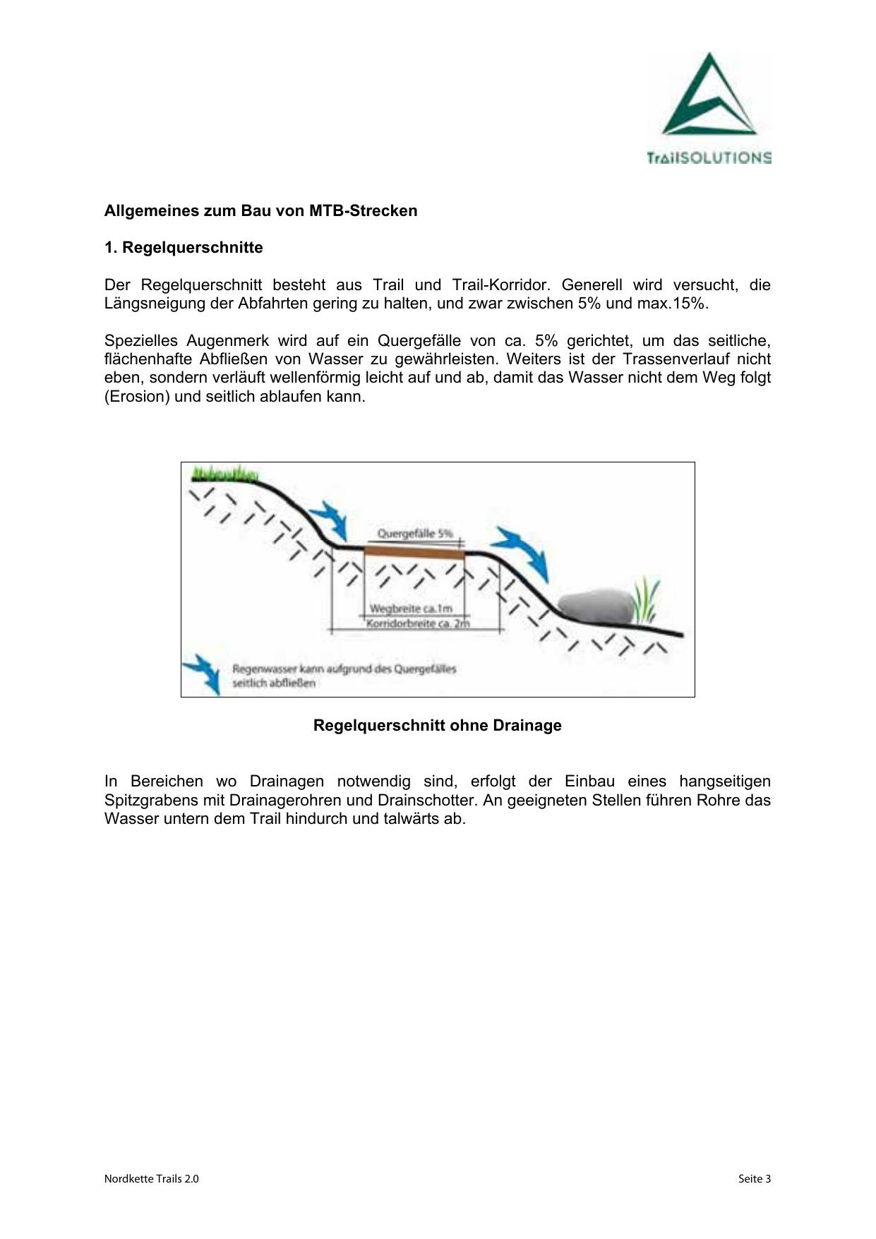 flächenhafte Abfließen von Wasser zu gewährleisten. Weiters ist der Trassenverlauf nicht