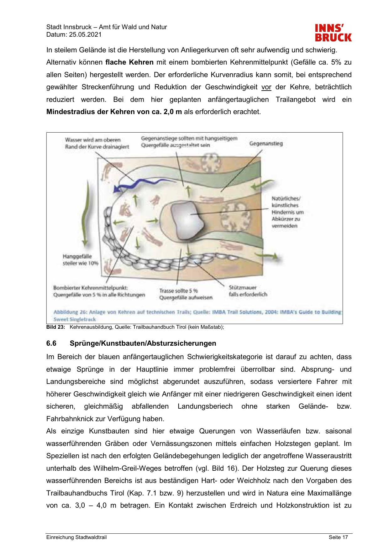 Trailbauhandbuchs Tirol (Kap. 7.1 bzw. 9) herzustellen und wird in Natura eine Maximallänge