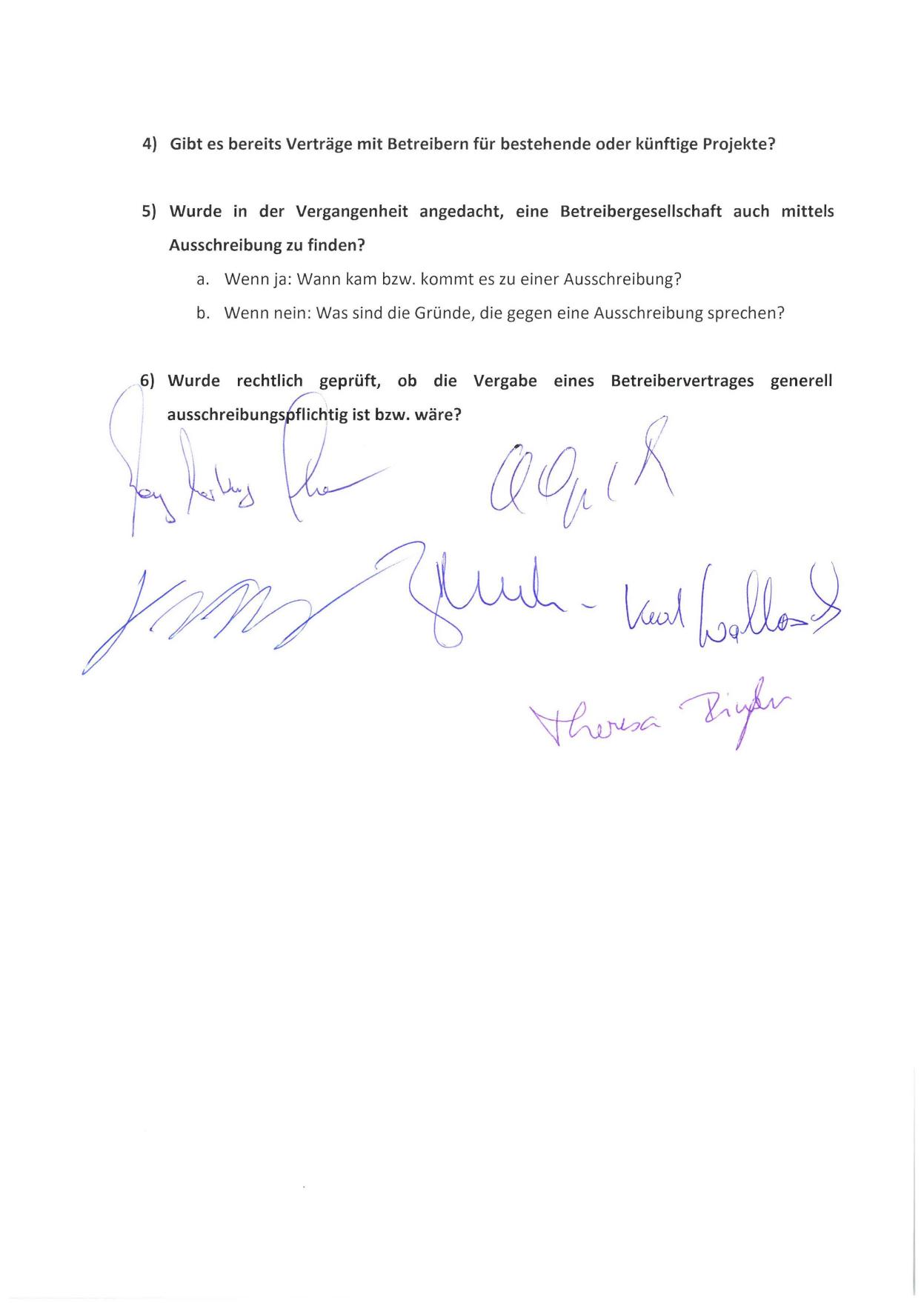 5) Wurde in der Vergangenheit angedacht, eine Betreibergesellschaft auch mittels