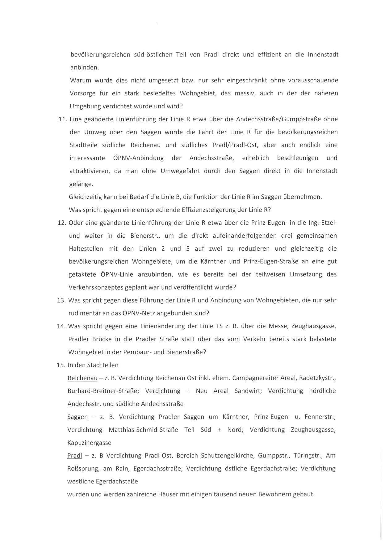 12. Oder eine geänderte Linienführung der Linie R etwa über die Prinz-Eugen- in die lng.-Etzelund weiter in die Bienerstr., um die direkt aufeinanderfolgenden drei gemeinsamen