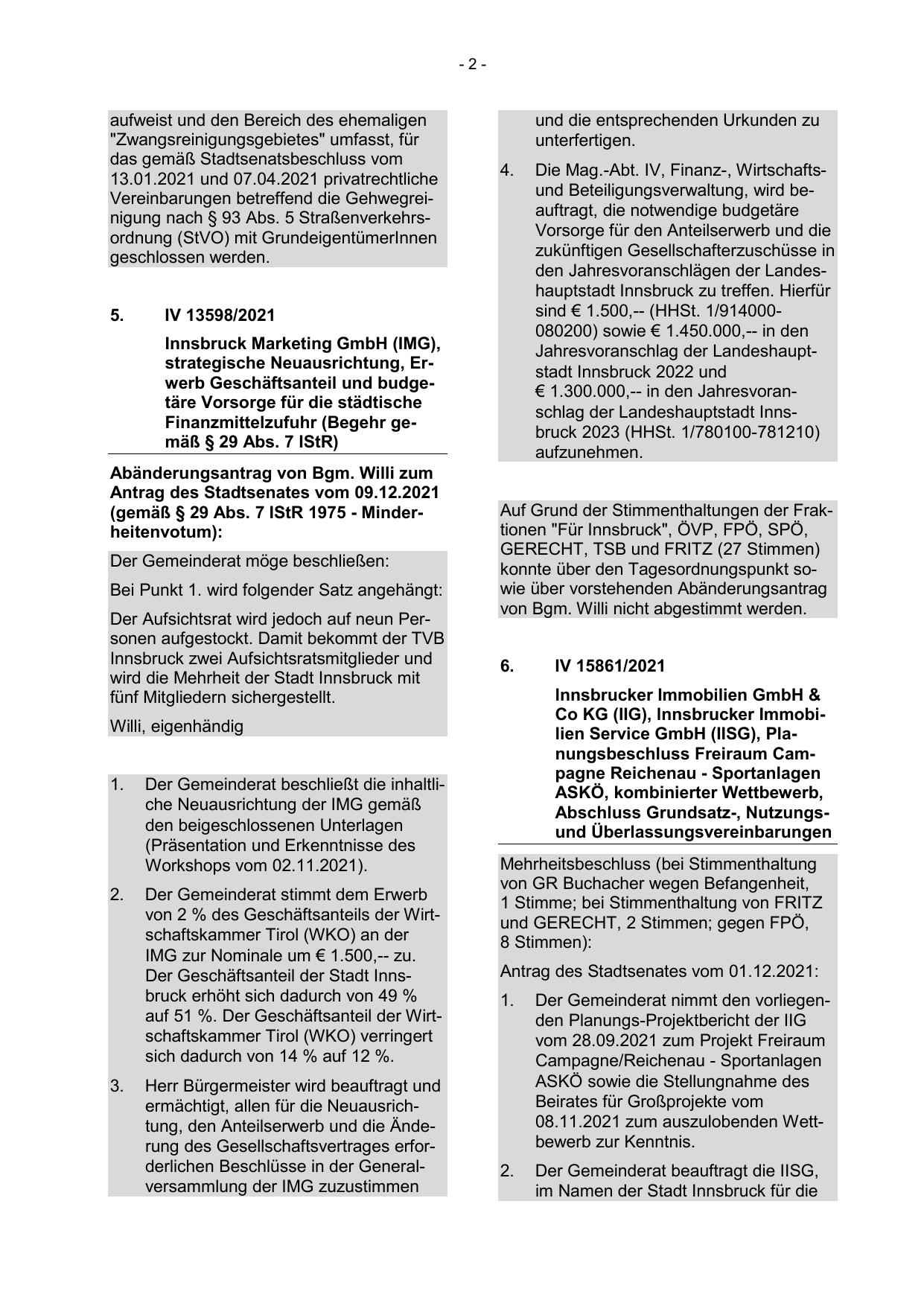 Auf Grund der Stimmenthaltungen der Fraktionen "Für Innsbruck", ÖVP, FPÖ, SPÖ,